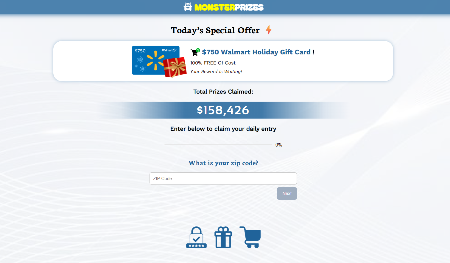 Offer Name: MonsterPrizes - $750 Walmart Holiday Gift Card - US