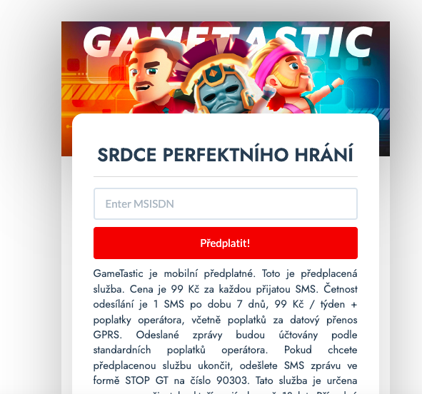 | Offer Name: | [MOB] GAMETASTIC /CZ [T-Mobile/Vodafone/O2] - PIN |