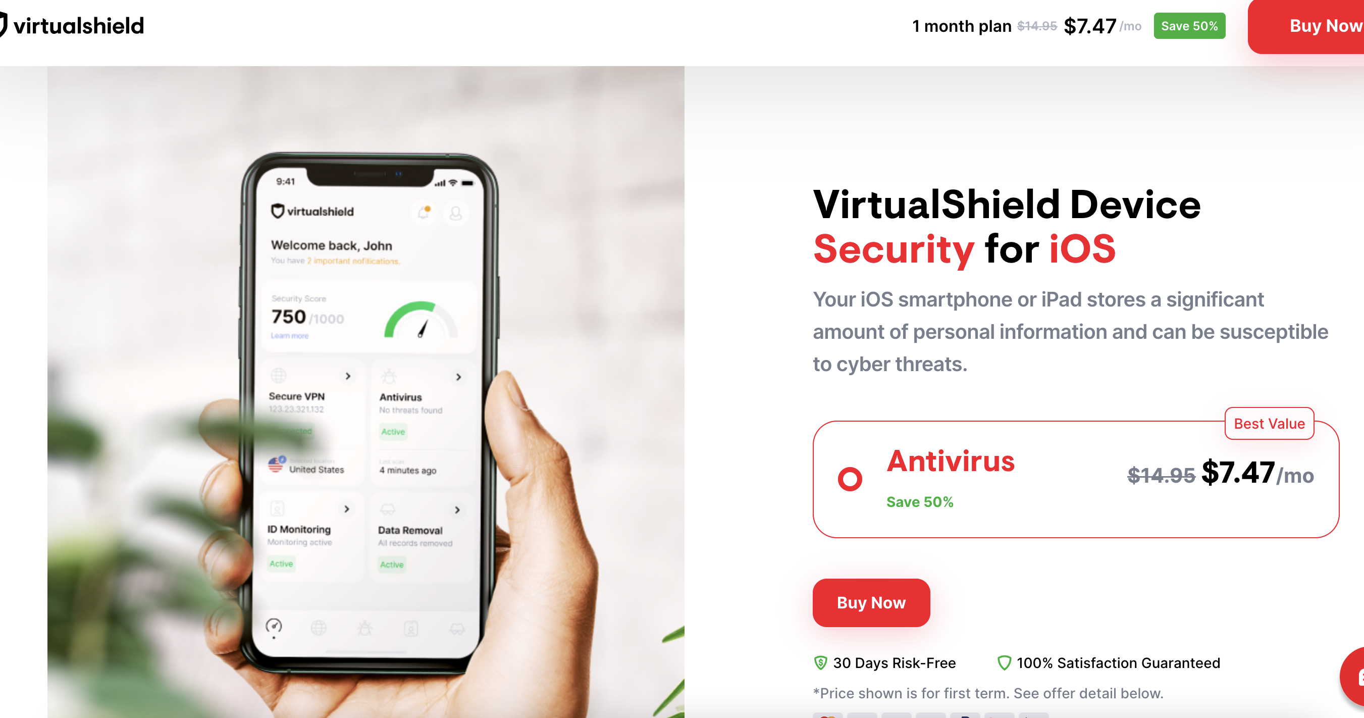 | Offer Name: | [WEB+MOB] Virtual Shield - Antivirus - CTC $7.47 (Monthly Plan) US/CA/UK CPS |