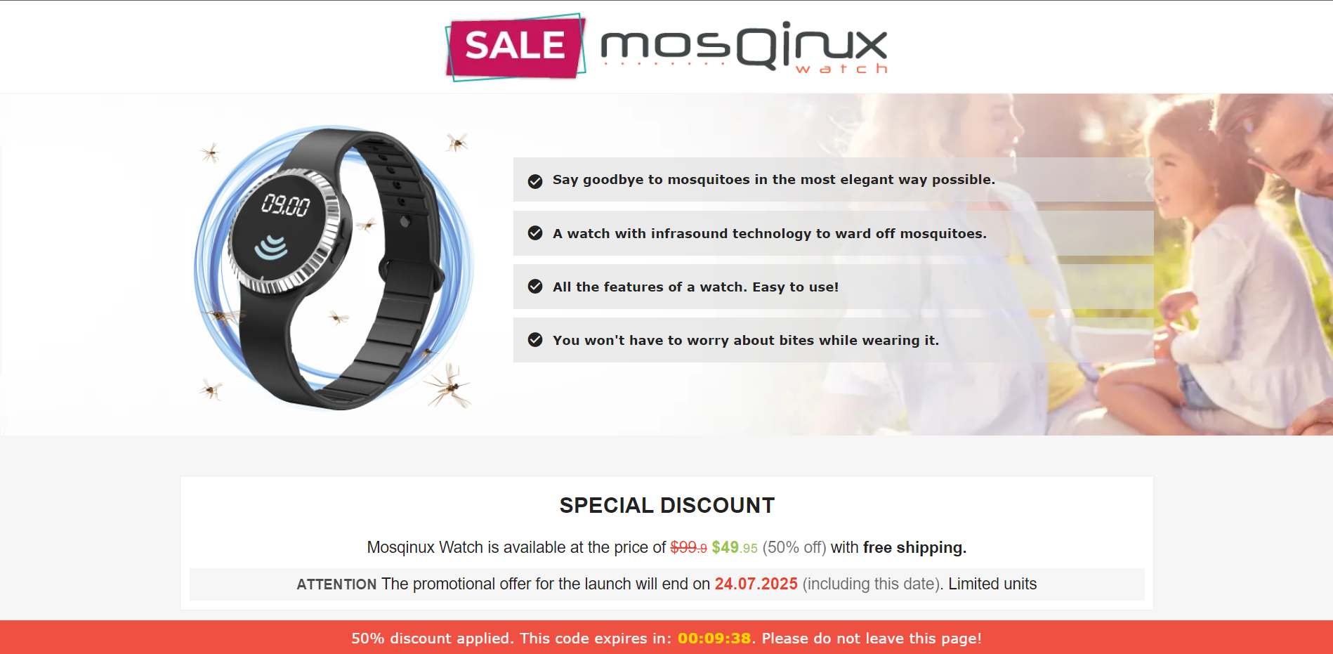 | Offer Name: | [WEB+MOB] Mosqinux Watch – Ultrasonic Mosquito Repellent Watch /International (112 GEOs) CPS *FB/TT/Google/Taboola Pixel* [Approval Required] |