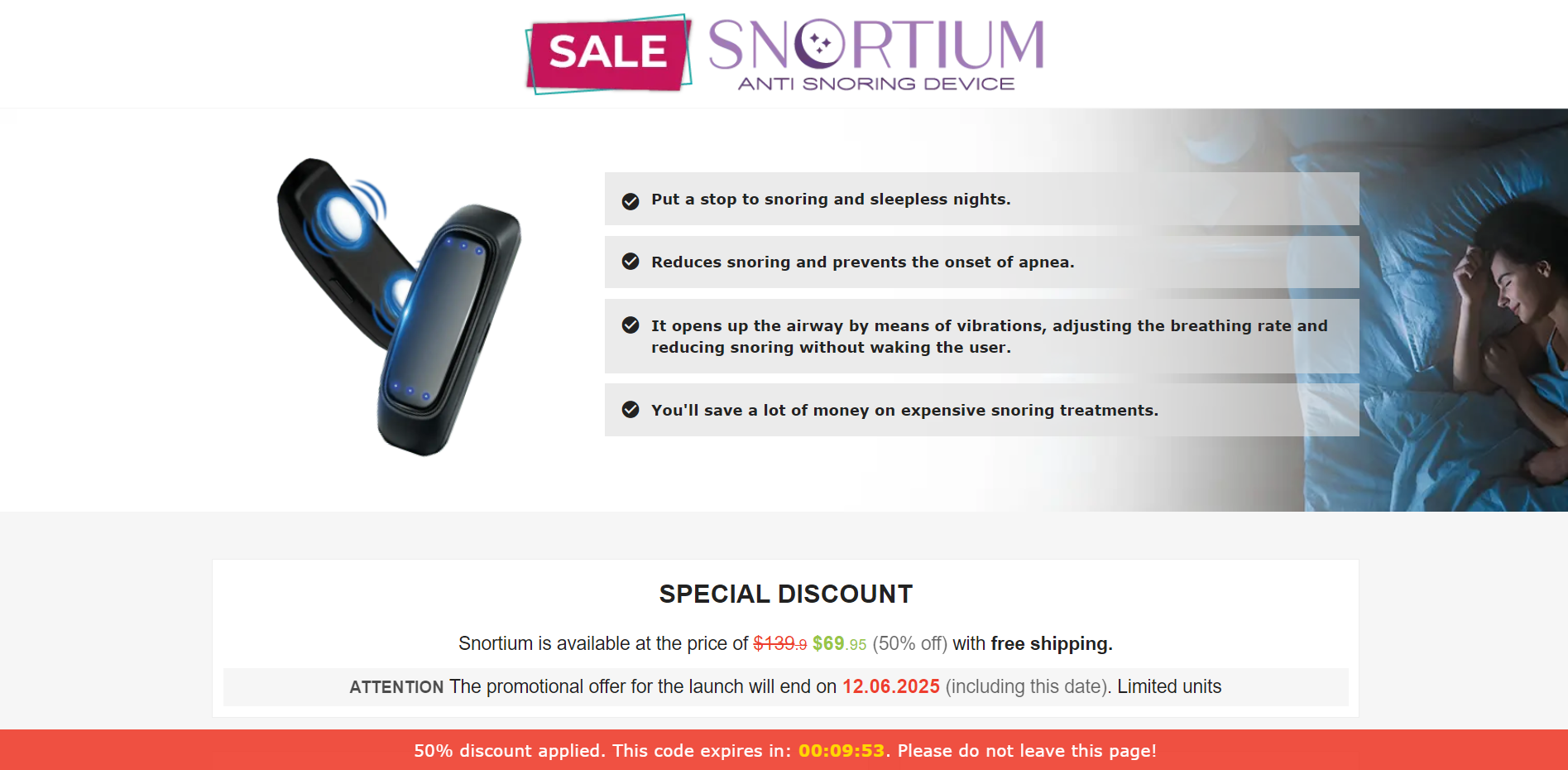| Offer Name: | [WEB+MOB] Snortium – Anti-Snoring Device /International (112 GEOs) CPS *FB/TT/Google/Taboola Pixel* [Approval Required] |