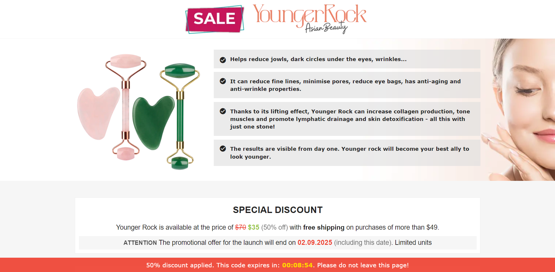 | Offer Name: | [WEB+MOB] Younger Rock – Facial Massage Roller /International (112 GEOs) CPS *FB/TT/Google/Taboola Pixel* [Approval Required] |