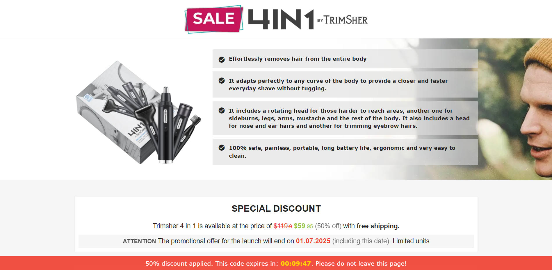 | Offer Name: | [WEB+MOB] Trimsher 4 in 1 – Unisex Rechargeable Razor /International (112 GEOs) CPS *FB/TT/Google/Taboola Pixel* [Approval Required] |
